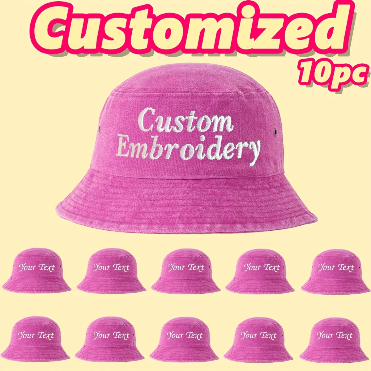 10pcs Customizable Bucket Hats with Embroidery - Soft Pink, Breathable Fabric, Adjustable Drawstring, Perfect for Parties, Camping & Weddings, Party Accessories, Fantasy Theme, Comfortable Fit