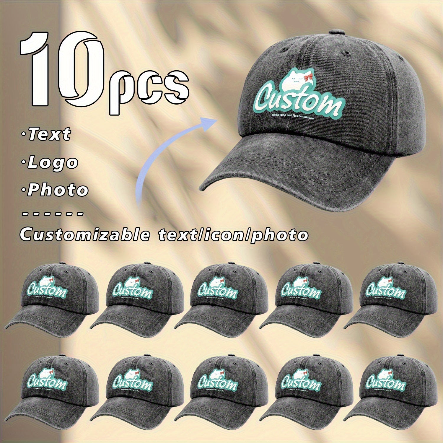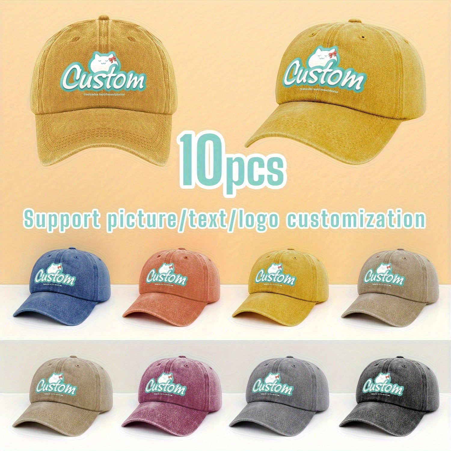 10pcs, Customizable Logo, Personalized Image Photo 10pcs Same Style Retro Fashion Baseball Caps, Customizable Private Patterns, Suitable for Company Team Building Logo or Event Party, Event Customization, Family Customization