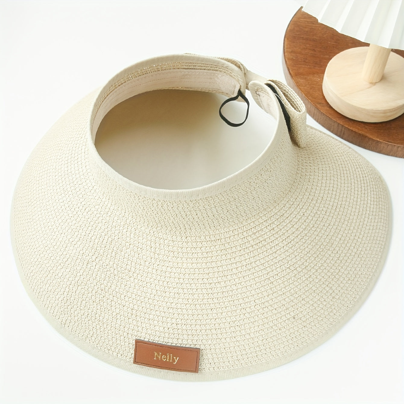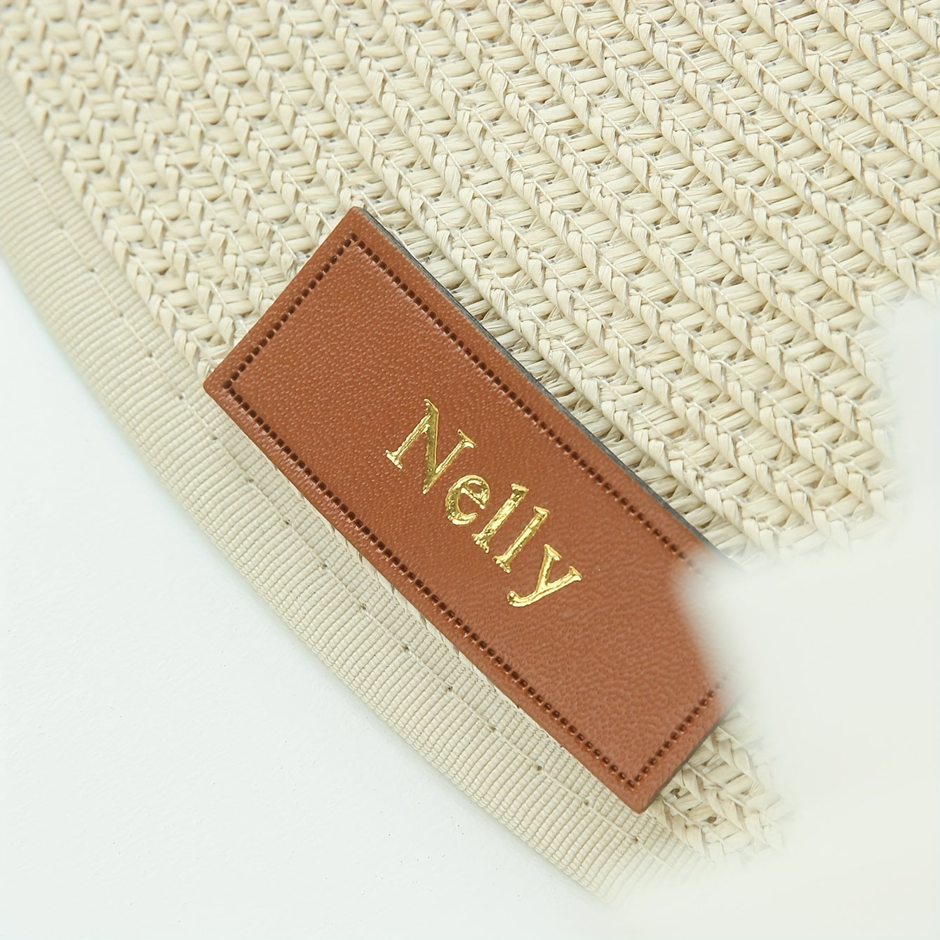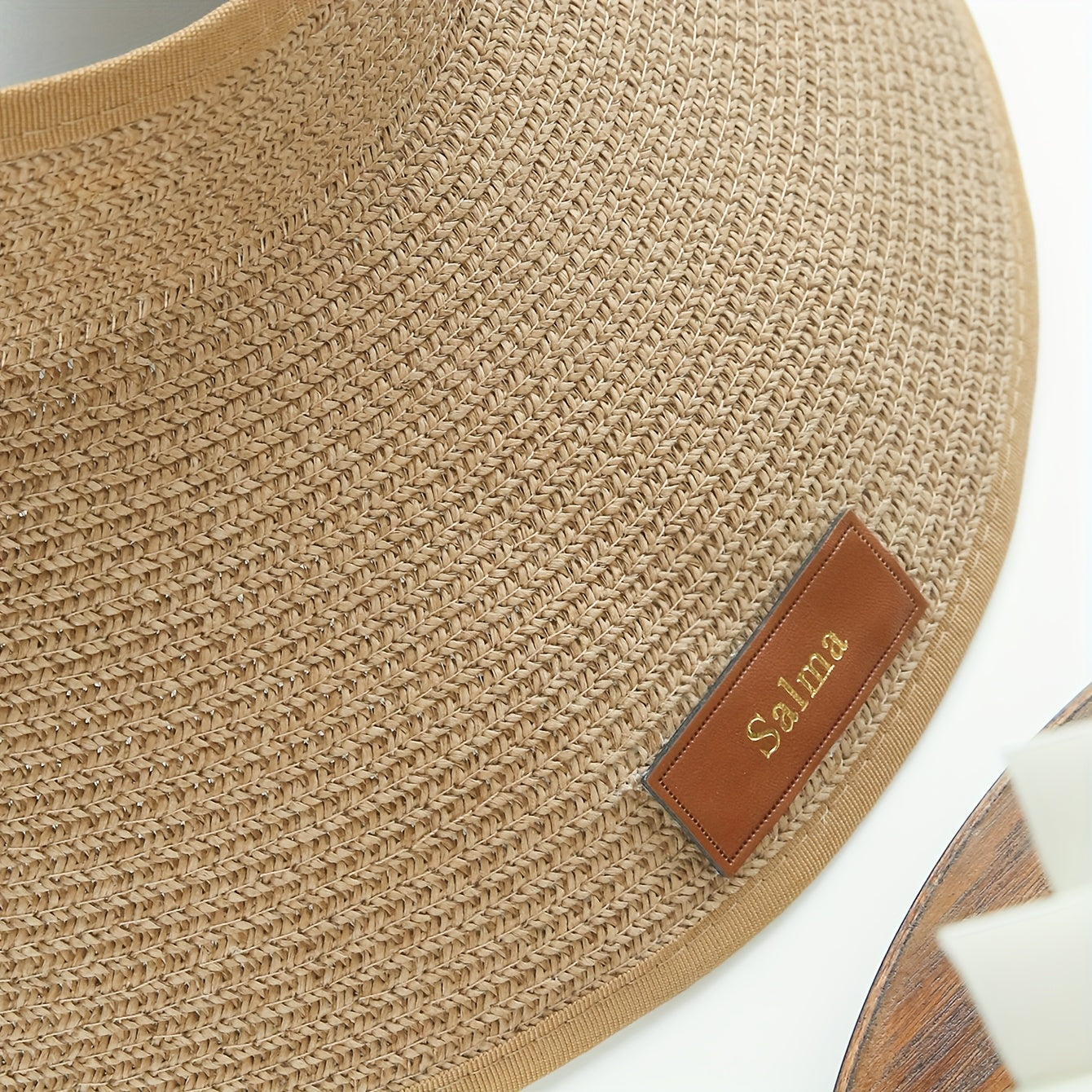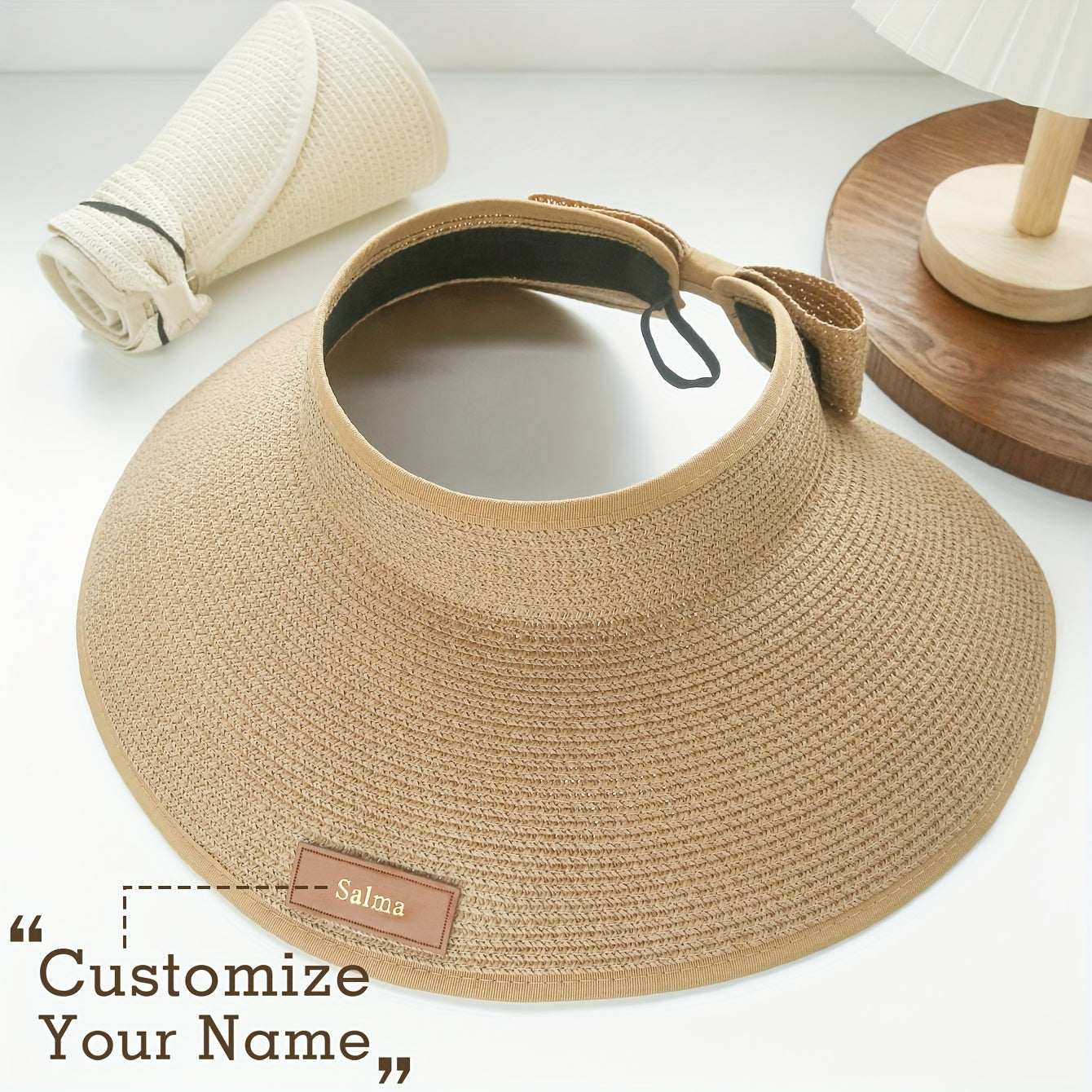 1pc Custom Name Women's Sun Hat - Personalized Golden Monogram Wide Brim Straw-Style Polyester Beach Hat, Foldable Packable Summer Visor with Snap Closure, Mother's Day Birthday Gift