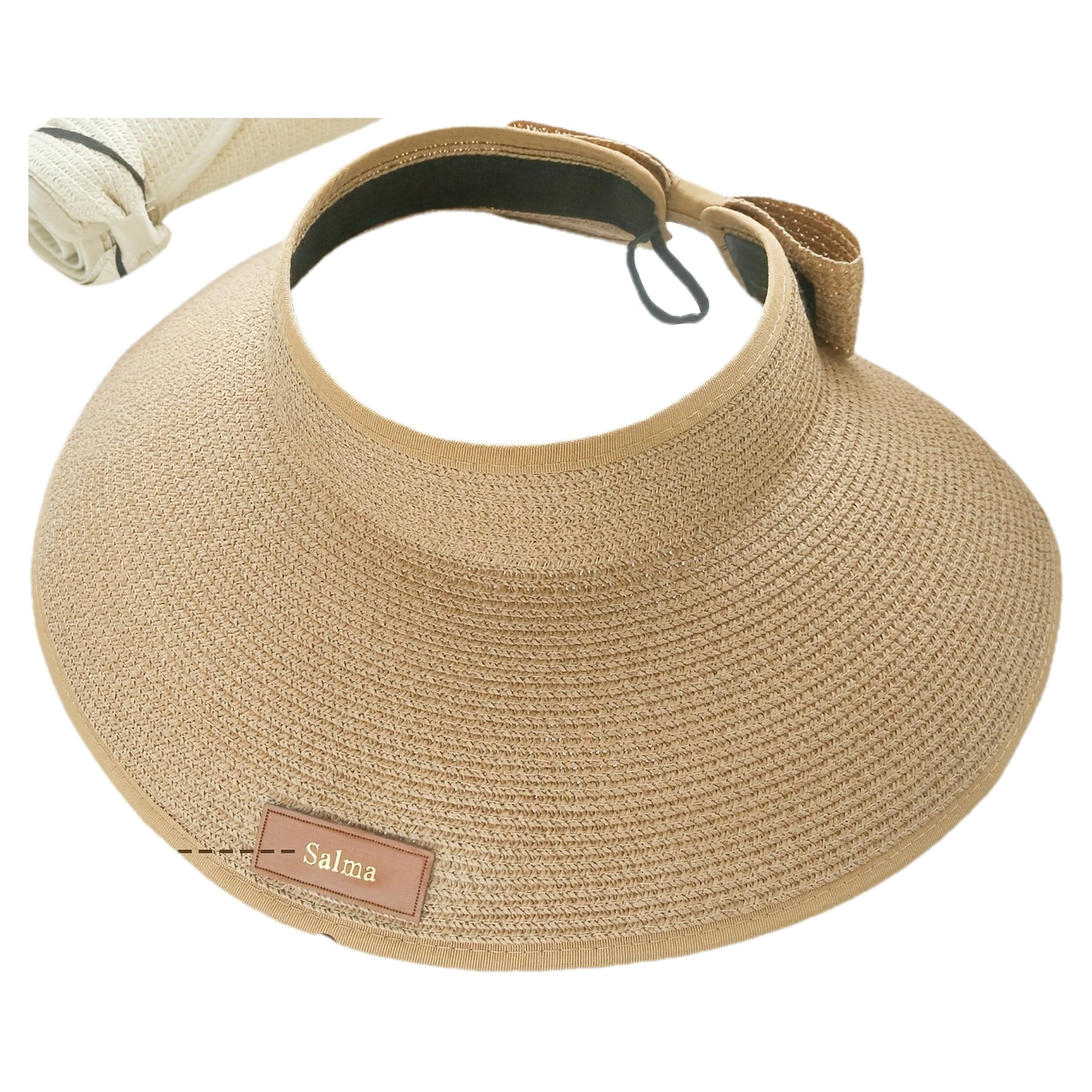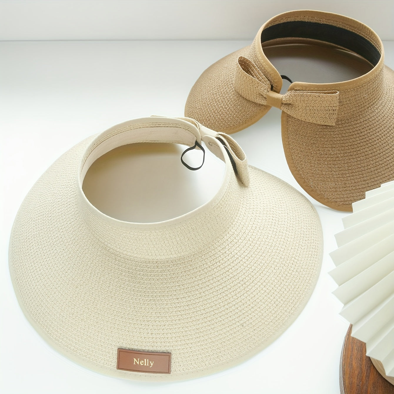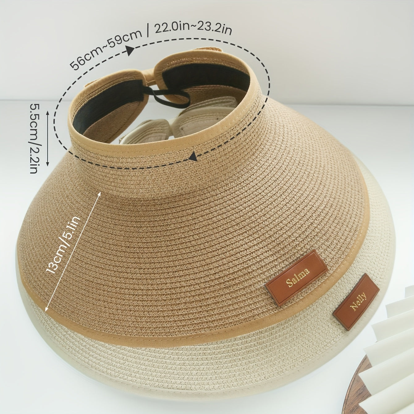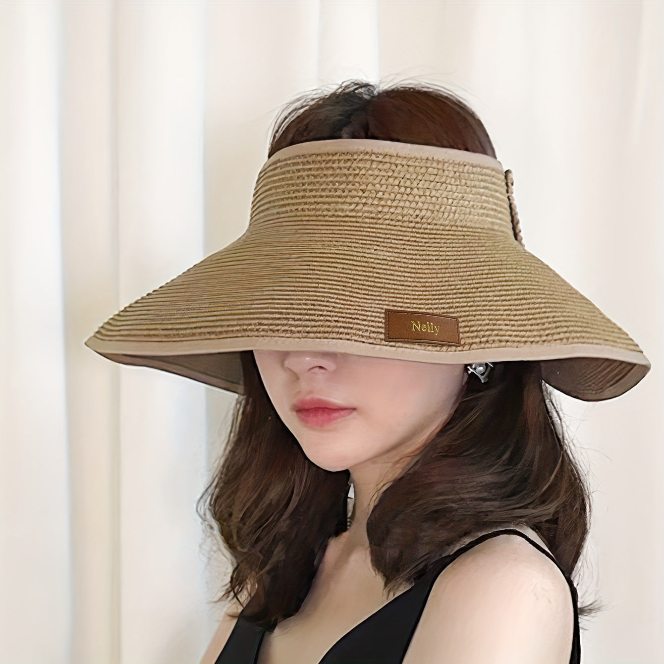 1pc Custom Name Women's Sun Hat - Personalized Golden Monogram Wide Brim Straw-Style Polyester Beach Hat, Foldable Packable Summer Visor with Snap Closure, Mother's Day Birthday Gift