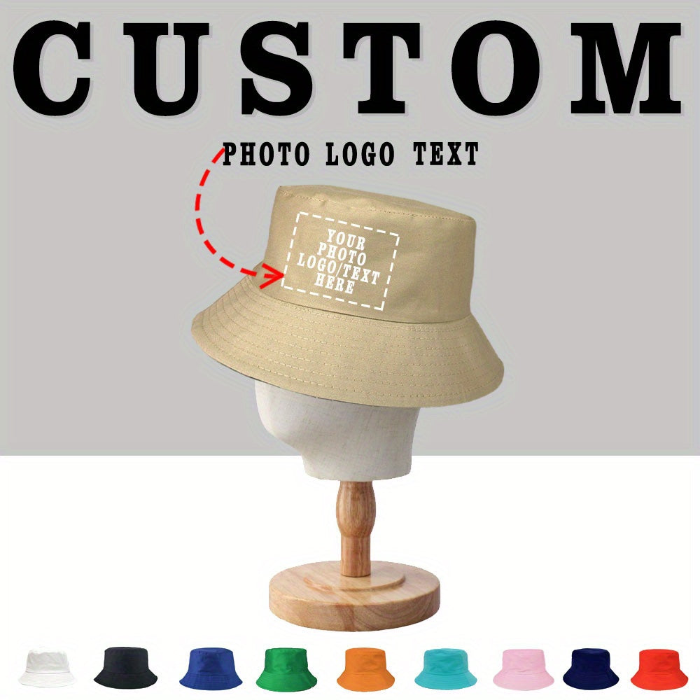 1pc Customizable Women'S Bucket Hat with Photo & Text - Lightweight, Durable Woven Material, Perfect for Outdoor Activities, Adjustable Fit for Hiking & Beach Wear, Beach Accessories