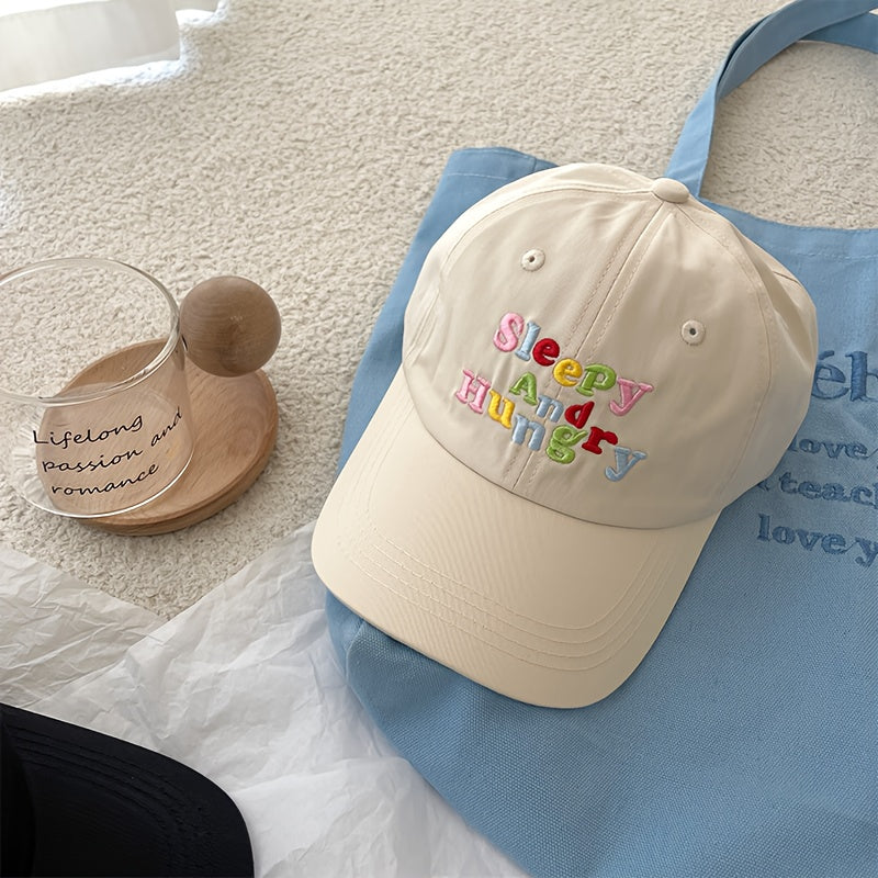 1pc Women's Colorful Letter Embroidered Baseball Cap - Adjustable, Moisture-Wicking Polyester Hat for Independence Day & Casual Attire, Korean Style with \