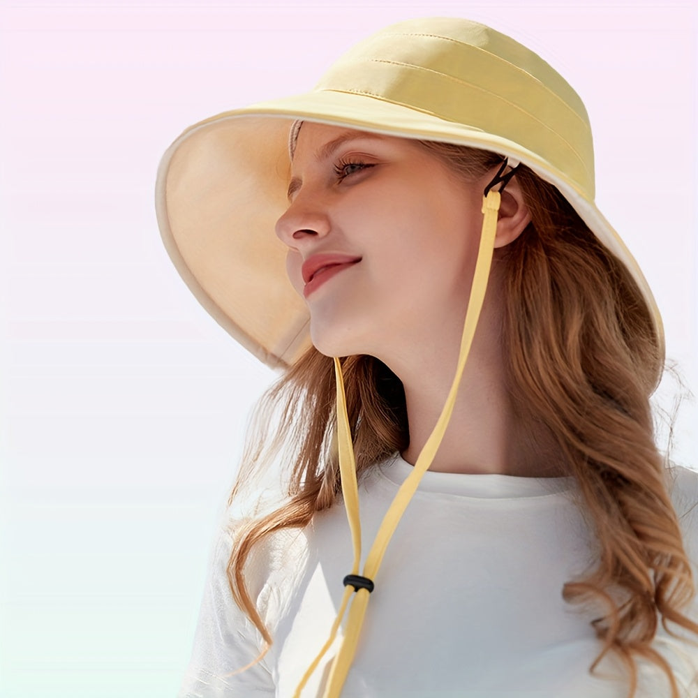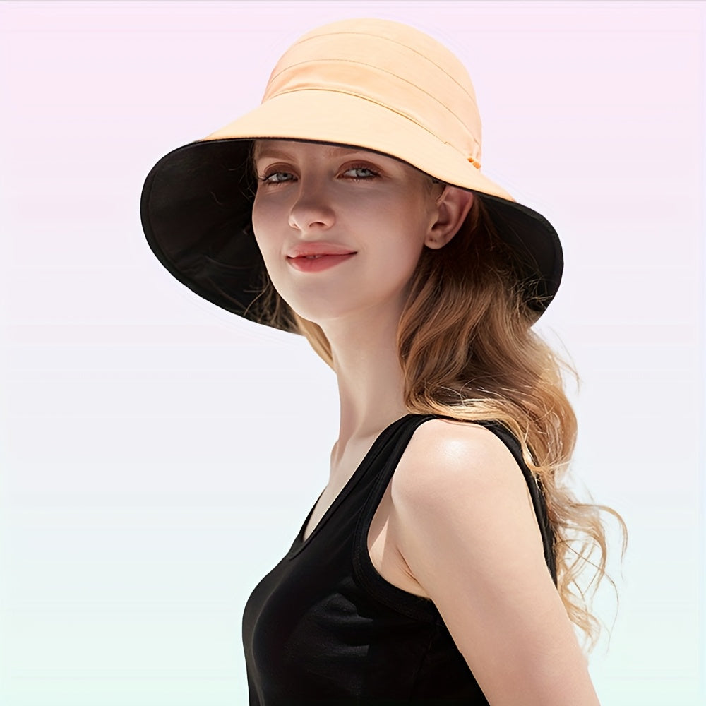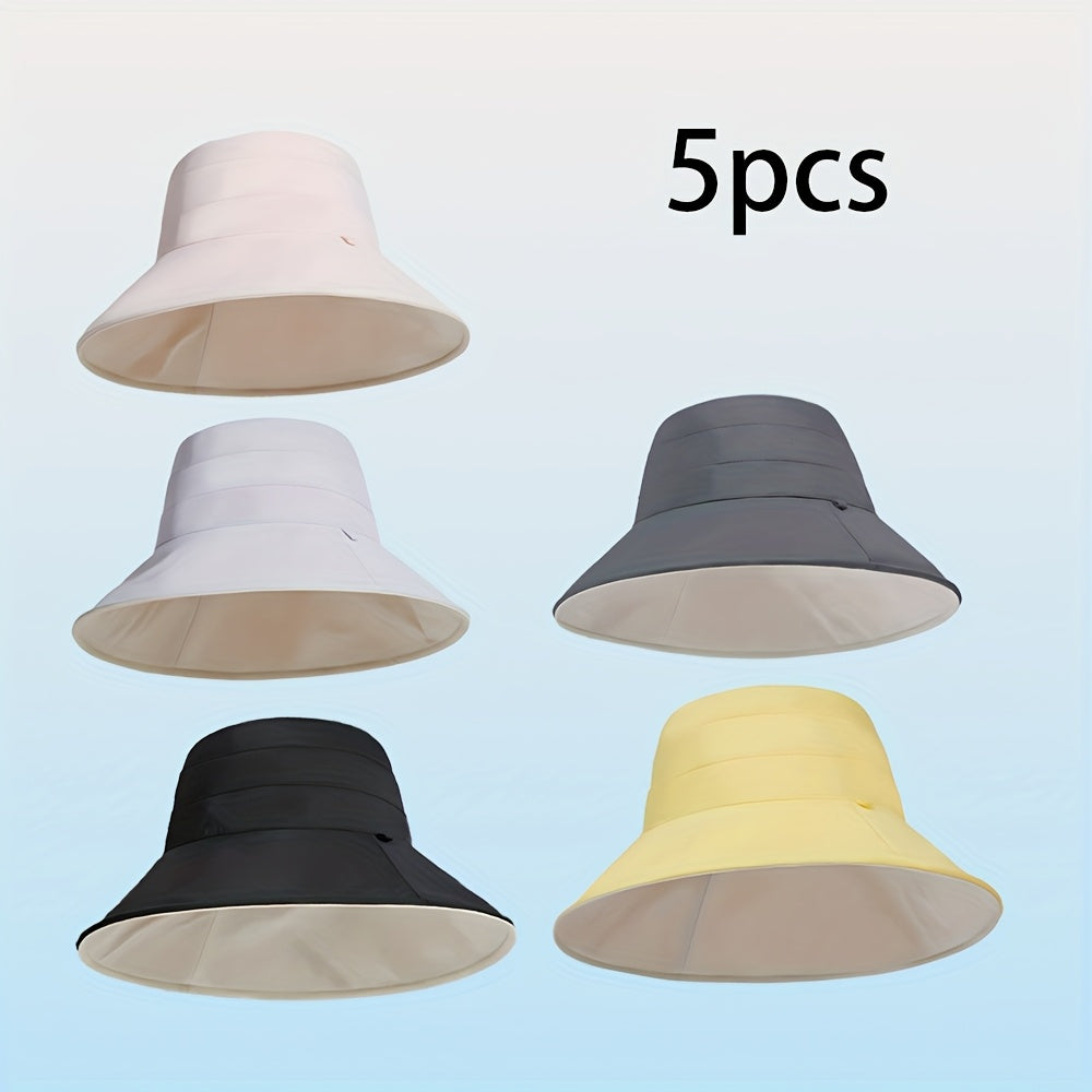 5pcs AOWUUC Women's Double-Sided Quick-Dry Fisherman Hats - Reversible Black & Beige, Lightweight Sun Protection with Adjustable Drawstring, Compact Foldable Design for Outdoor Camping, Beach, Hiking, Beach Hat | Casual Headwear | Durable Headgear