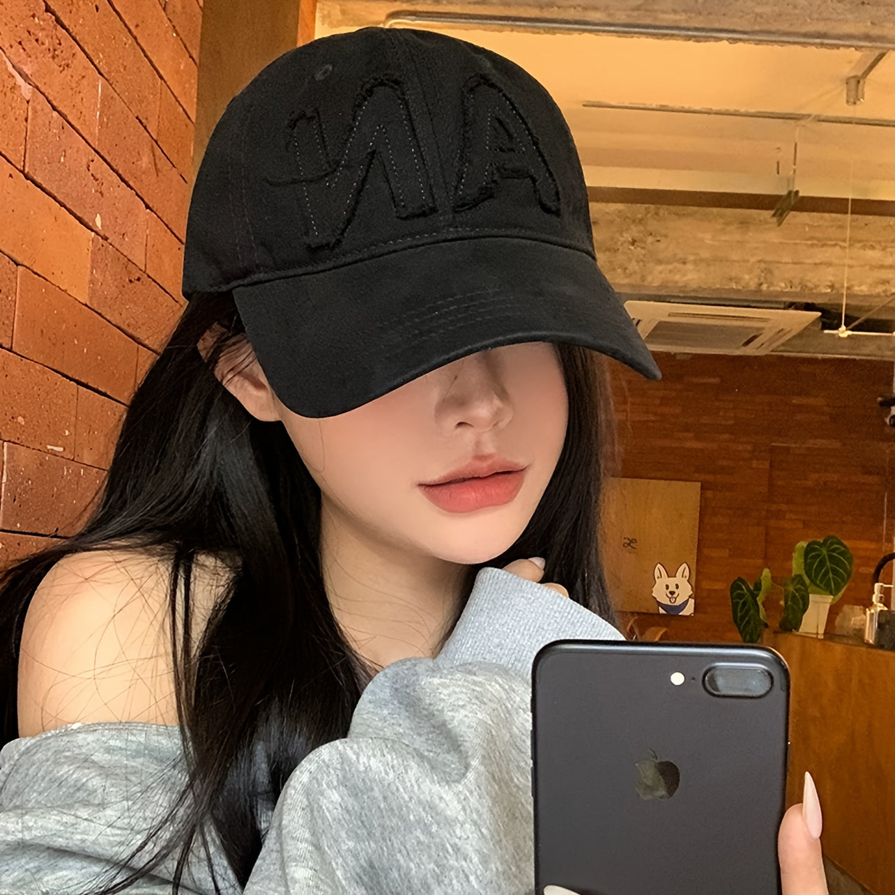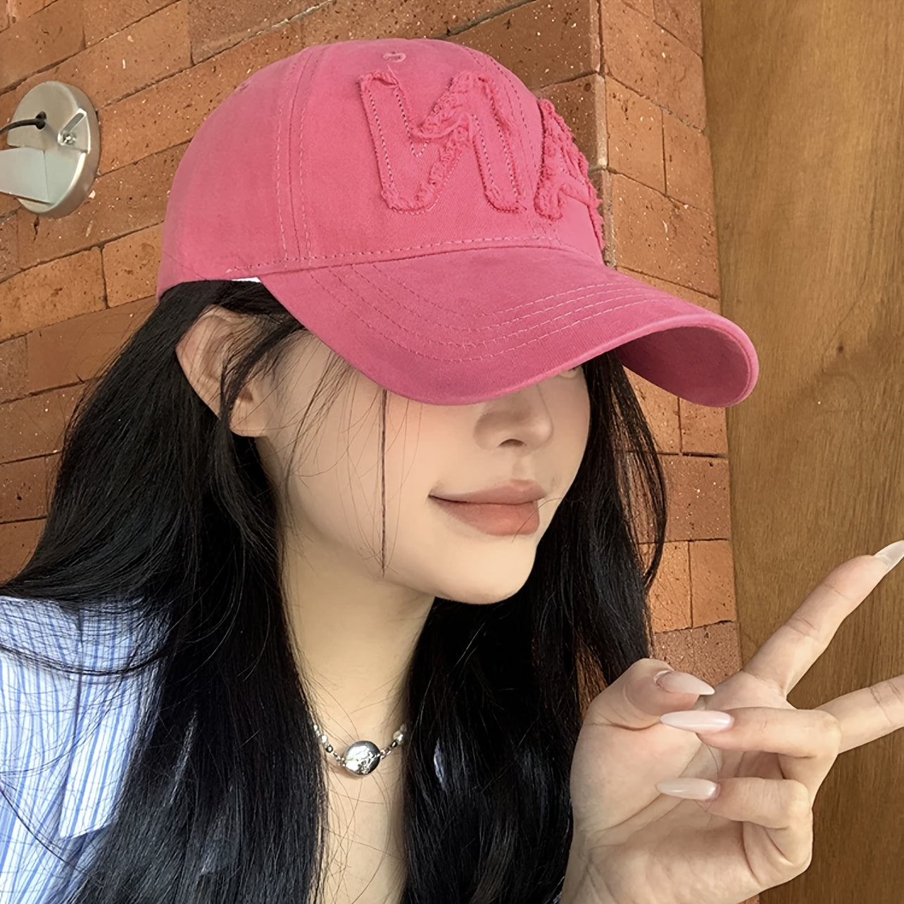 A New Women'S Pink Baseball Cap with Large Letter Embroidery, Suitable for Both Men And Women in Spring And Autumn, a Korean-Style Versatile Cap That Makes The Face Look Smaller, an Ideal Gift Choice for Fashionable Couples.
