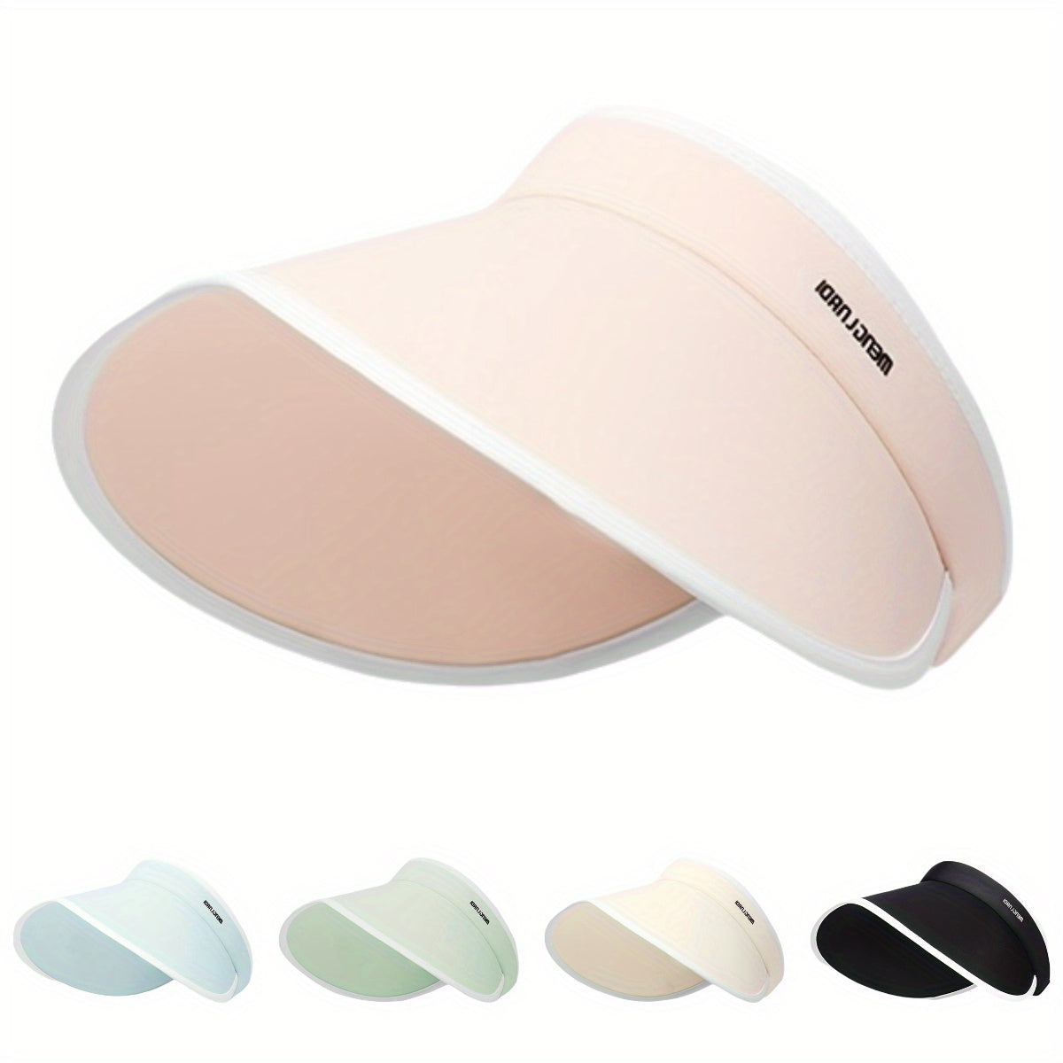 Adjustable Fashion Visor Cap - Large Brim, Sun Protection Hat for Outdoor Cycling & Travel, Empty Top Design, Polyester, Stylish Black & White Options