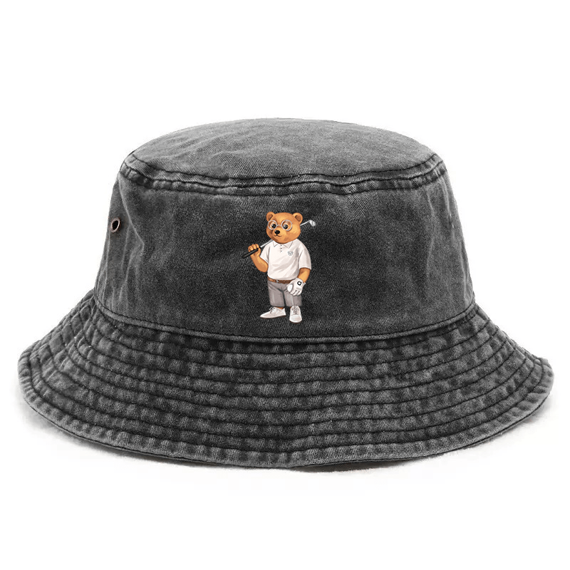 Adjustable Unisex Bucket Hat with Golf Bear Graphic Print - Street Style Outdoor Cap for Hiking, Camping, Casual Wear - Durable & Stylish Design