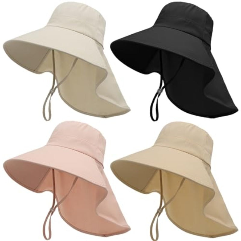 MULIMU 4 Pack Women's Hats Sun Hats Foldable Fishing Hat Women's Visors Wide Brim Sun Hat UV Sun Protection Caps Beach Camping Hiking Black
