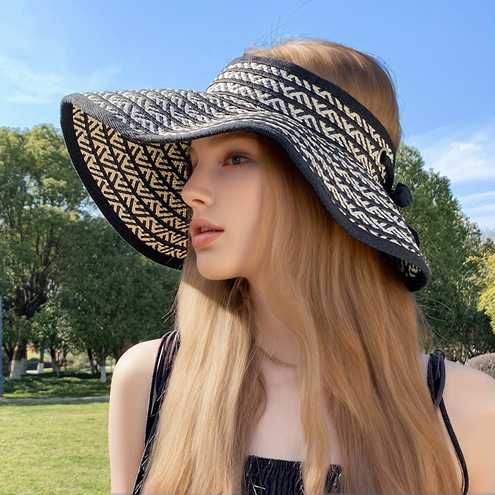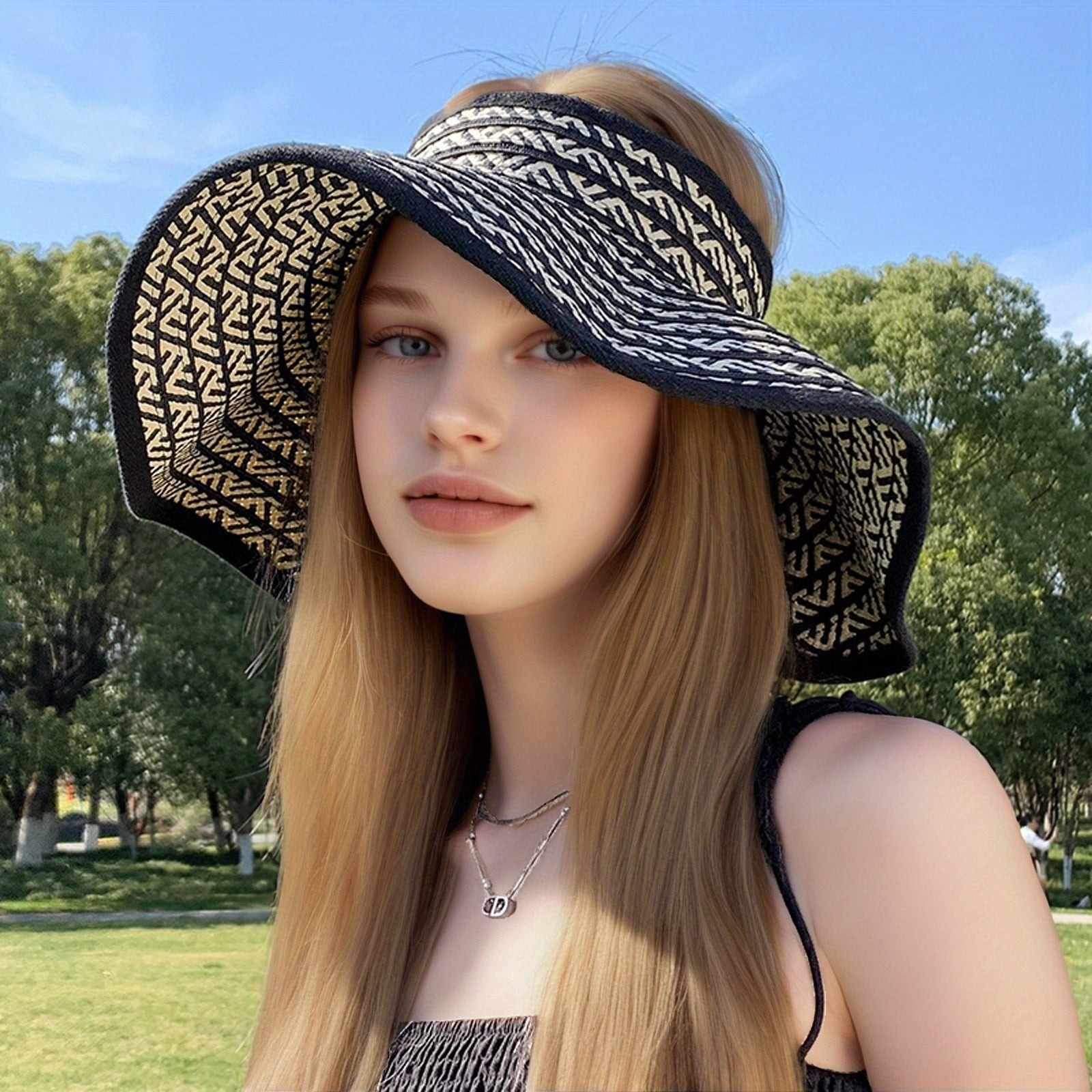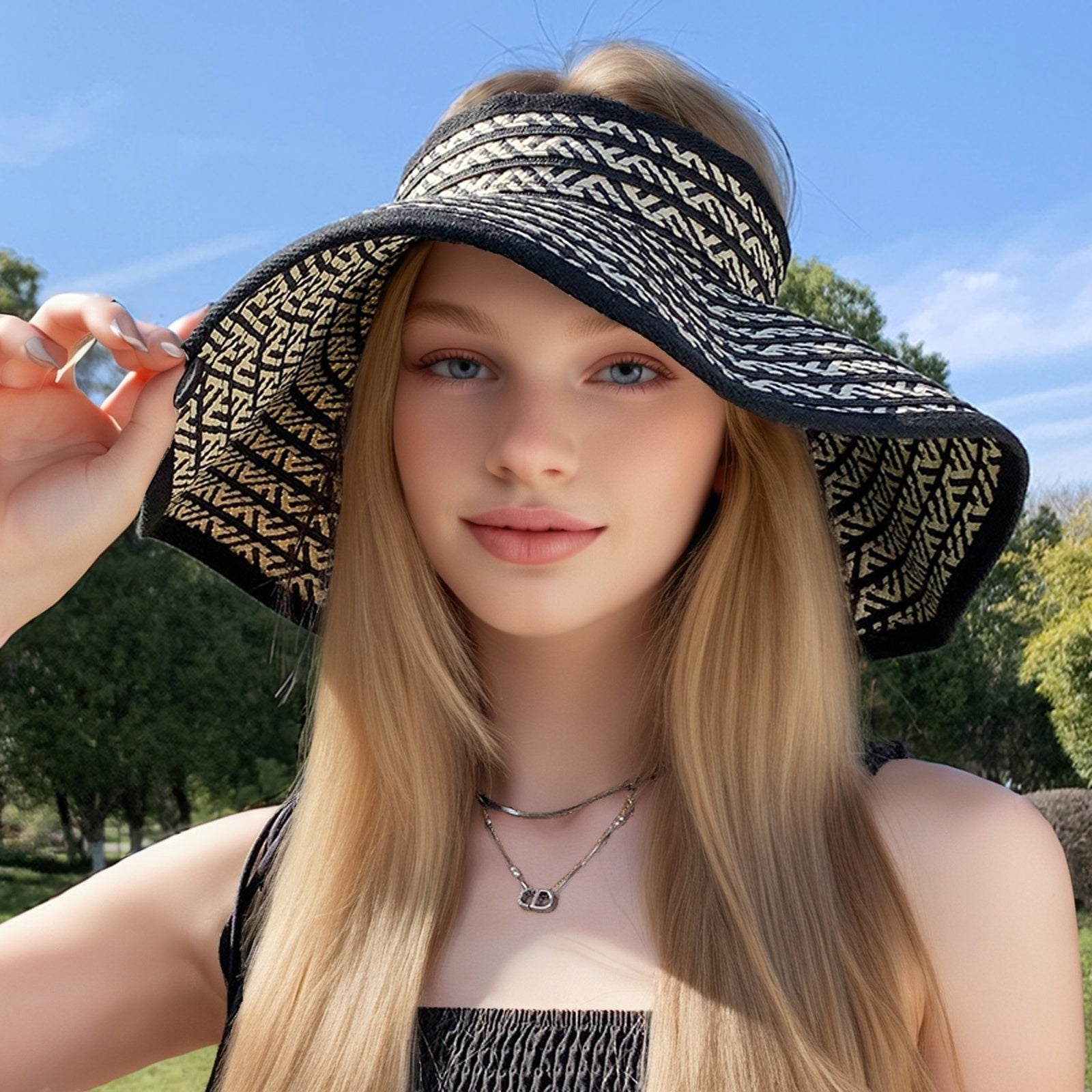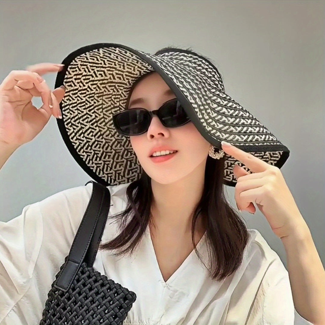 Stylish Sun Hat Lightweight Foldable Women's Wide Brim Sun Hat | Black & White Geometric Pattern, Breathable Summer Beach Hat for Outdoor Activities, Vacation Accessories, Stylish Durable Headwear