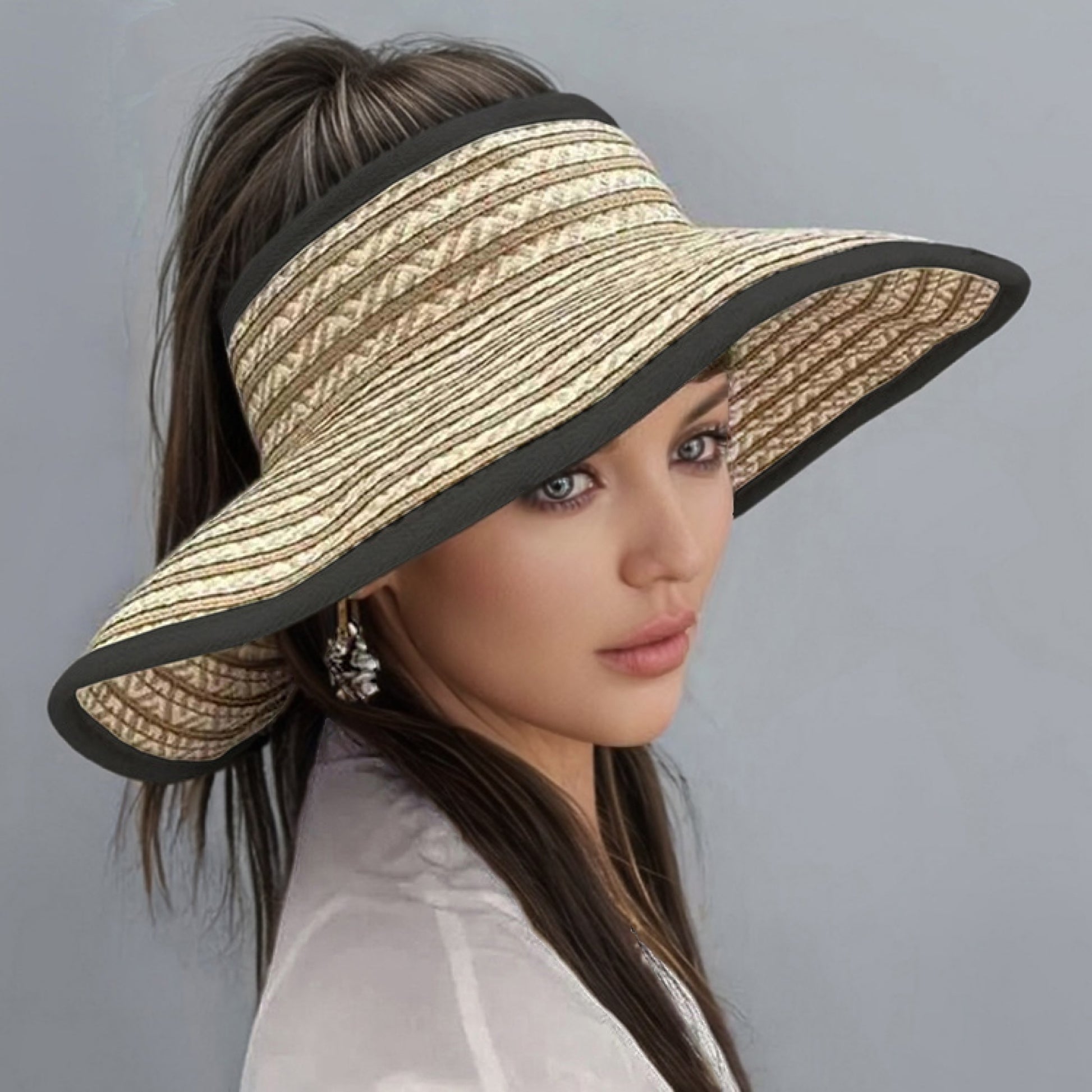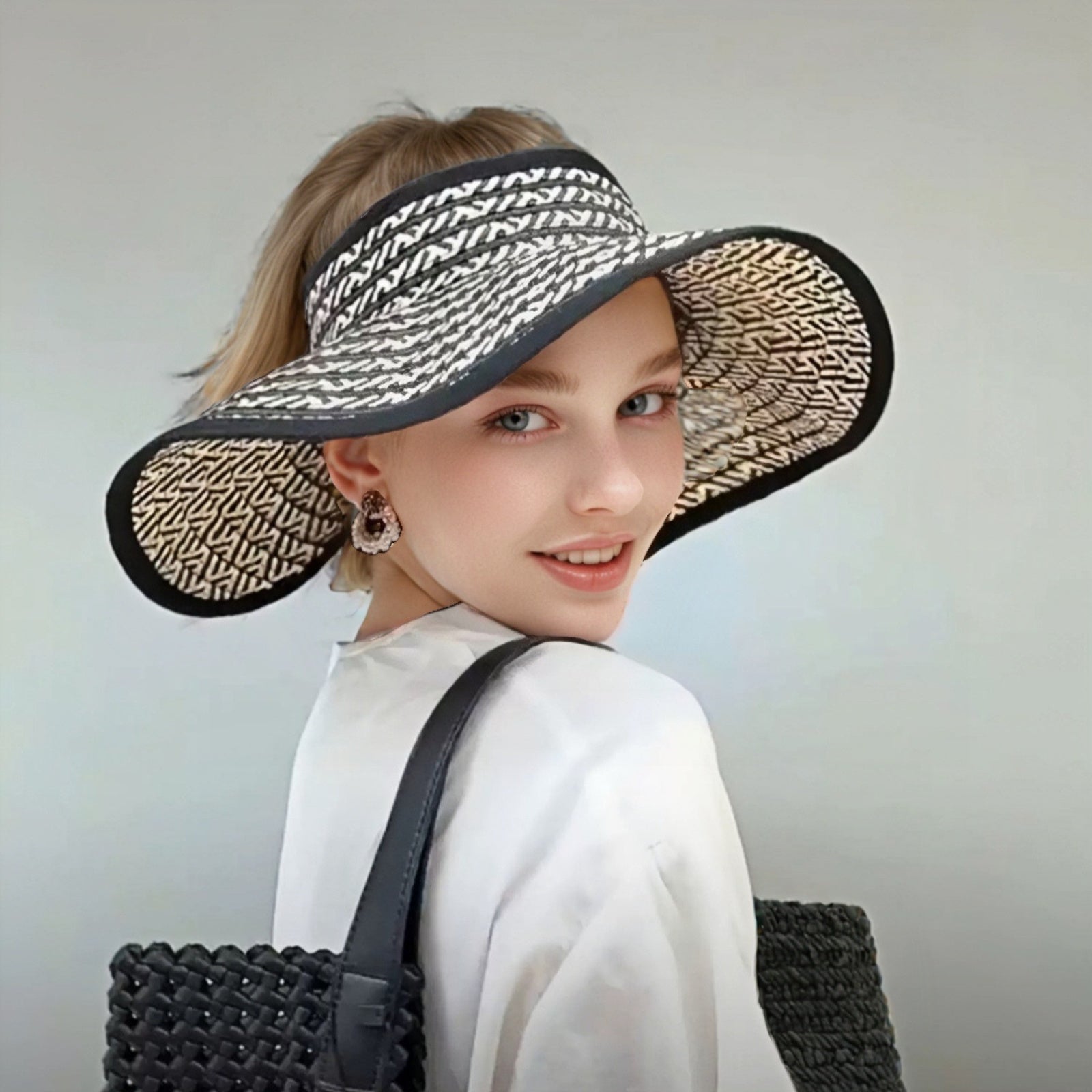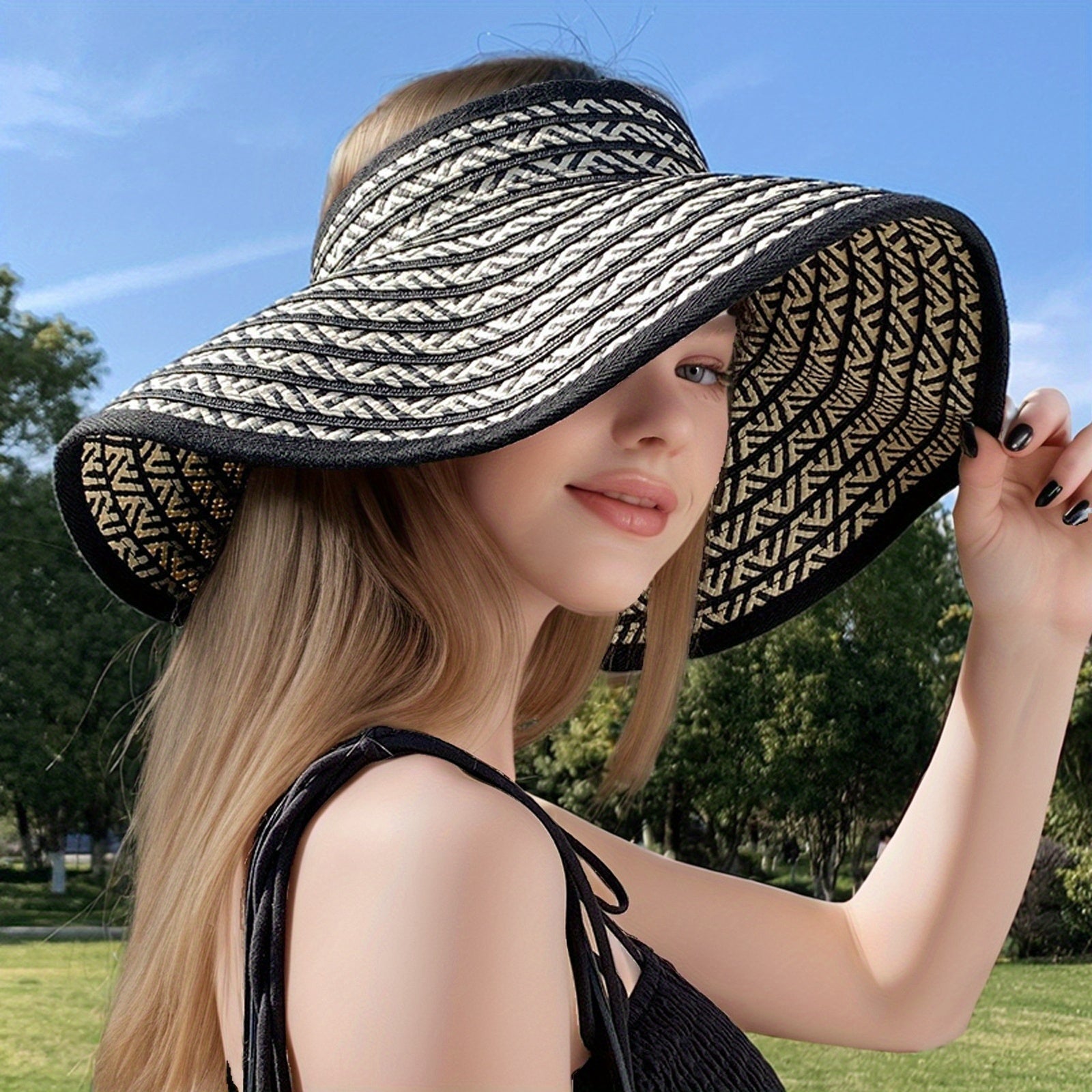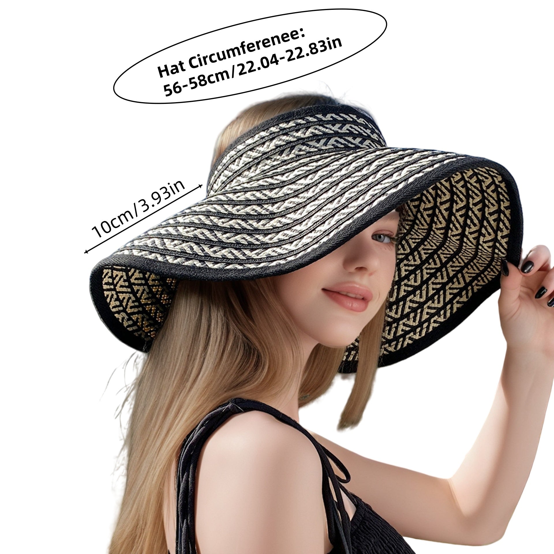 Stylish Sun Hat Lightweight Foldable Women's Wide Brim Sun Hat | Black & White Geometric Pattern, Breathable Summer Beach Hat for Outdoor Activities, Vacation Accessories, Stylish Durable Headwear