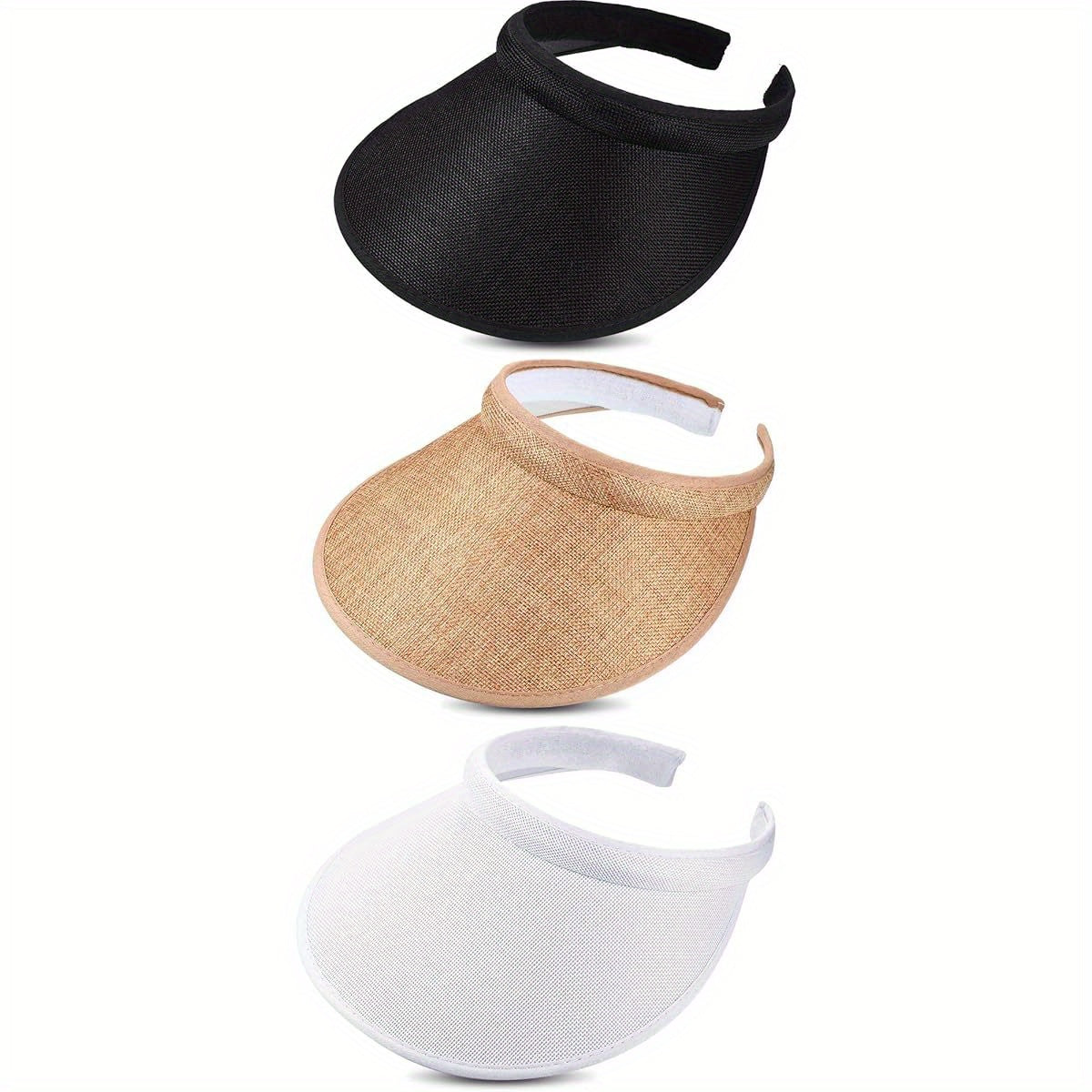 Syhood 3pcs Women's Adjustable Clip-On Sun Visor Hats - Wide Brim Summer Beach Golf Hats, Breathable Lightweight for Outdoor Activities & Bachelorette Parties (Black, Beige, White), Versatile Fashion Accessory, Comfortable Headwear