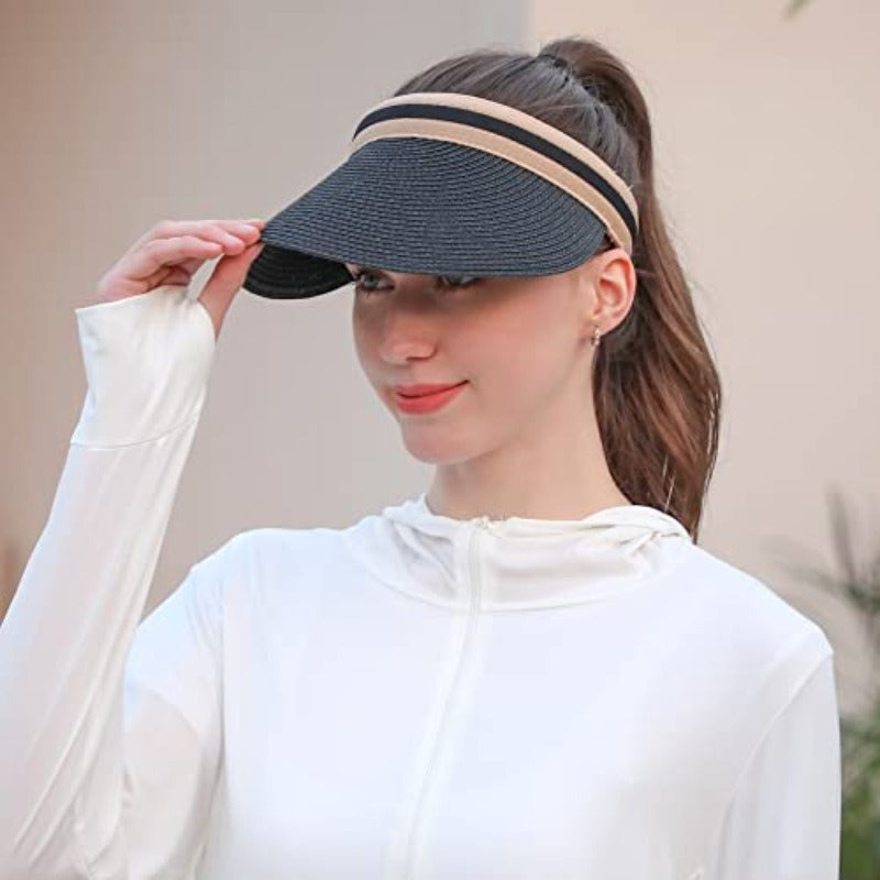 Women Summer Sun Hat Lady's Portable Beach Visor Bowknot Straw Hat,, Outdoor Hat, Chic Summer Accessory, Fashionable Headwear, Handcrafted Hat, Lightweight Material, Widebrimmed Hat, Women's Hat, Beachgoers, Summer Travelers